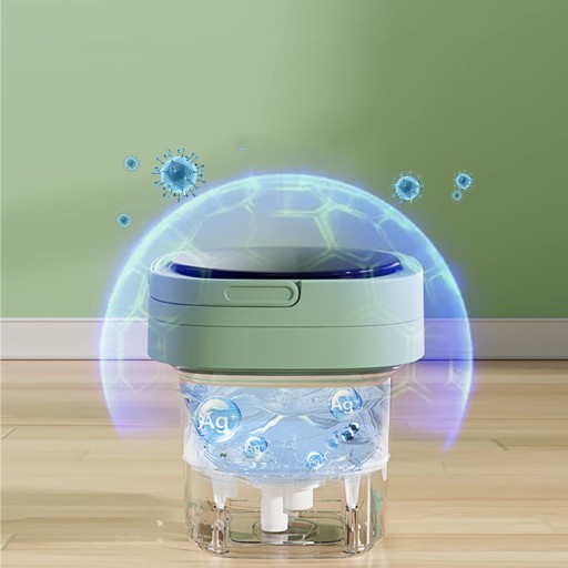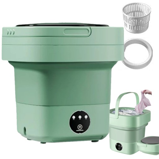 -Ta zminiaturyzowana pralka została specjalnie zaprojektowana tak, aby można ją było złożyć do małej walizki i łatwo transportować. Kiedy chcesz zrobić pranie, po prostu rozłóż pralkę i włóż ubrania do środka.