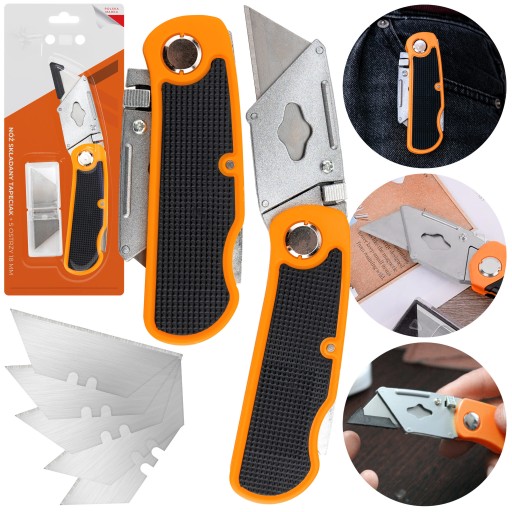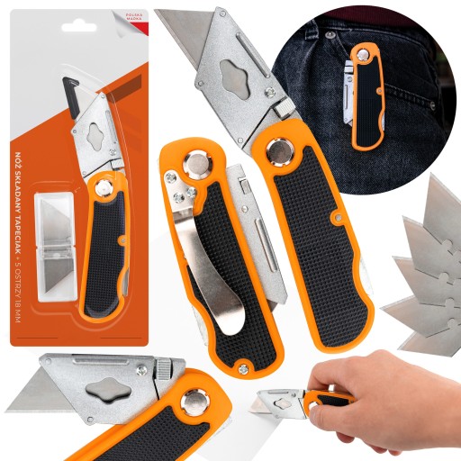 Nóż do tapet tapeciak składany + 5 ostrzy wymienne nożyk trapezowy składany