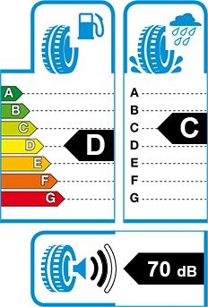 Na oznaczeniu pokazane są trzy fale. Im mniejsza ich liczba jest w kolorze czarnym, tym ciszej opona się toczy. Obok fal podana jest również zmierzona wartość zewnętrznego hałasu toczenia w decybelach.