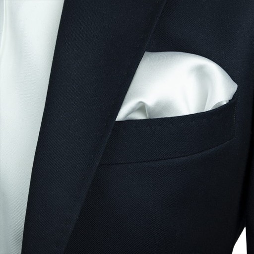 Poszetka jedwabna biała obszyta ręcznie EM 13