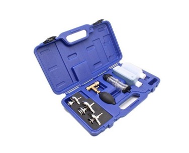 W zestawie: – przyrząd do pomiaru szczelności . – Ręczna pompka do zasysania gazu z układu chłodzenia – Pojemnik z płynem reakcyjnym – Pusty pojemnik na zużyty płyn – Przyłącze zakończone szybkozłączką Adaptery: 1) Mercedes-Benz, GM (buick), Jeep 2) Peugeot, Subaru, Chrysler, Acura, GM (Nova, Spectrum and Sprint) Mitsubishi, Nissan, Mazda, Toyota, Infiniti, Geo, Suzuki, Isuzu, Ford 3) Honda, Toyota, Suzuki, Mitsubishi, Chrysler, Acura