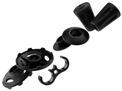 Wyjątkowo trwałe, aluminiowe końcówki, wyposażone w widiowe groty. W zestawie pokrowiec, komplet gumowych osłon oraz talerzyki o średnicy 50 mm.