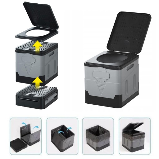 - Łatwy w użyciu i czyszczeniu: nawet dla początkujących, aby go rozłożyć/złożyć, zajmuje to tylko około 20 sekund. Nie musisz go nawet czyścić po użyciu, wystarczy wymienić worki na śmieci. Środek utwardzający zestala siusiu, tworząc biodegradowalny polimer, dzięki czemu toaleta podróżna jest bezzapachowa i szanuje środowisko.