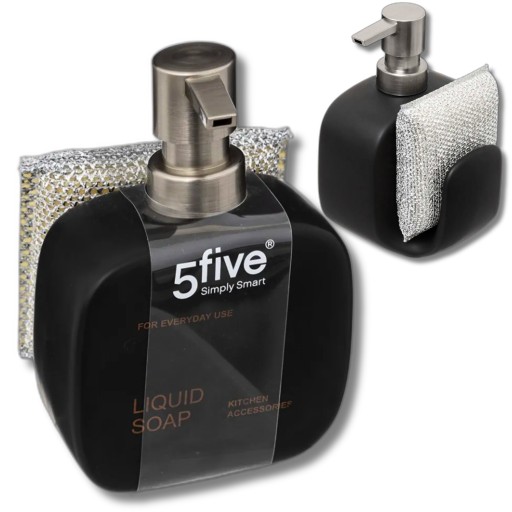 DOZOWNIK NA PŁYN DO NACZYŃ 400 ML + GĄBKA GRATIS 5five SIMPLY SMART CZARNY