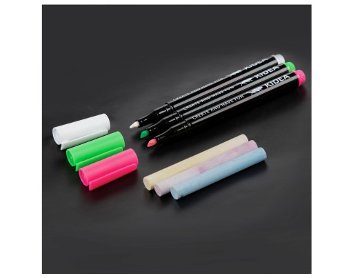 - Zmywalne pisaki kredowe w kolorach zielonym, czerwonym i białym dają ciekawy efekt rysowania, doskonale sprawdzą się też w dekorowaniu szklanych powierzchni.