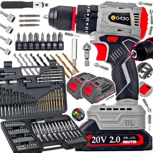 БЕСЩЕТОЧНАЯ УДАРНАЯ Дрель ОТВЕРТКА, НАБОР НАСАДОК 2xAKU 20V, 109 шт.