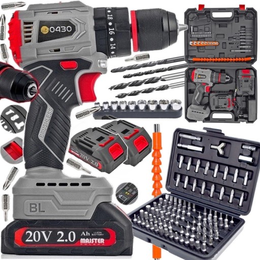 БЕСЩЕТОЧНАЯ УДАРНАЯ Дрель ОТВЕРТКА 2xAKU НАБОР НАСАДОК 20 В 100 шт.