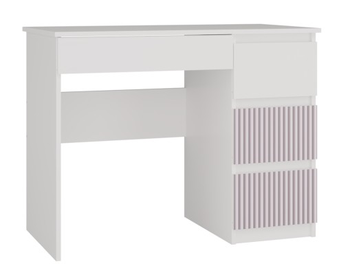 - 3 pojemne wysokie szuflady z prawej strony (w tym 2 szuflady z różowymi wzorami) i 1 niska z lewej strony pod blatem