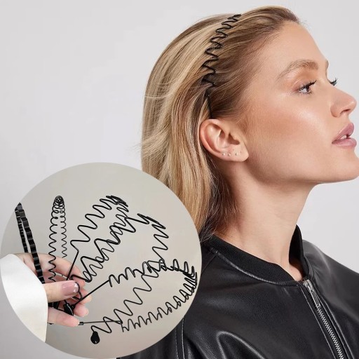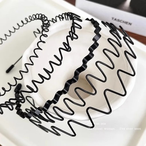 Унисекс Металлический волнистый весенний обруч для волос Черный Не