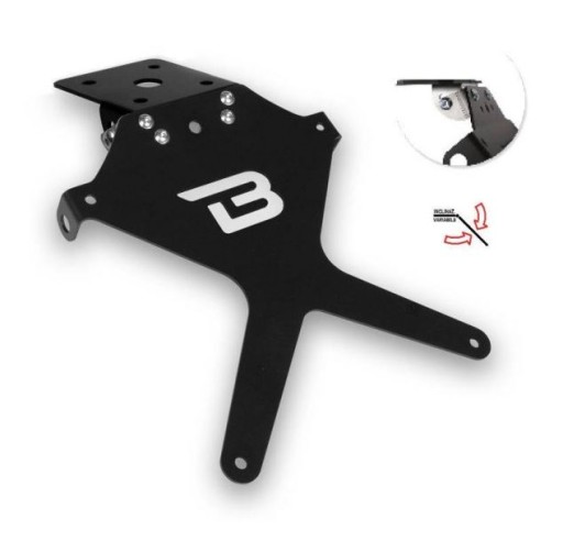 Wysokiej klasy mocowanie tablicy rejestracyjnej renomowanej włoskiej marki znanej na całym świecie. Wykonane z aluminium barwionego na kolor czarny, umożliwiają mocowanie tablicy rejestracyjnej bez szpetnej, długiej, fabrycznej konstrukcji stelaża. Pozwala utrzymać smukłą linię motocykla – to doskonały element tuningowy. Posiada regulację pochylenia ze stali inox. W zestawie otrzymujesz wszystkie śruby i podkładki. Gotowy komplet do zamontowania, bez przeróbek oryginalnych części motocykla.