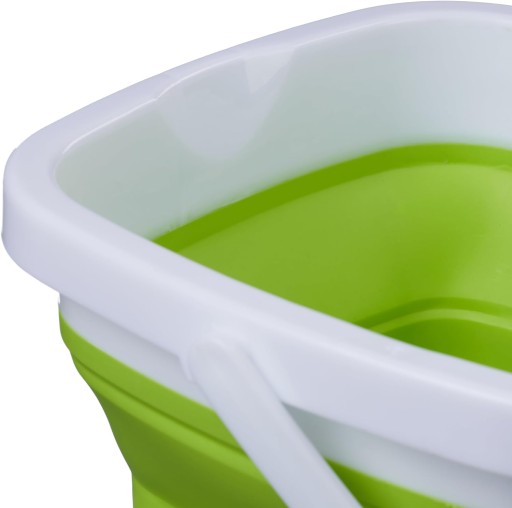 Stabilne 5 litrowe wiaderko w kilka sekund złożymy do kompaktowego rozmiaru, wręcz idealnego w czasie przechowywania lub podróży. Może służyć jako wiaderko lub miska. Przemyślana konstrukcja składa się z rantu oraz dna, które wykonane są z trwałego i sztywnego tworzywa, natomiast ścianki wykonane z mocnego silikonu.