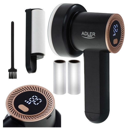 Golarka do tkanin LCD regulacja obrotów + 2 rolki do ubrań Adler AD9619