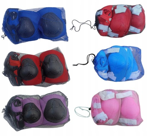 Zestaw ochraniaczy na nadgarstki, kolana i łokcie, niezbędny dla początkujących rowerzystów, rolkarzy, deskorolkarzy, użytkowników deski typu waveboard czy po prostu podczas aktywnego spędzenia czasu dzieci na świeżym powietrzu.