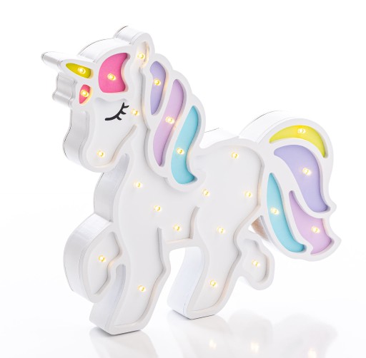 ДЕРЕВЯННЫЙ НОЧНИК С ДИОДАМИ СЧАСТЛИВЫЙ БЕГЕМ БЕЛЫЙ ЕДИНОРОГ