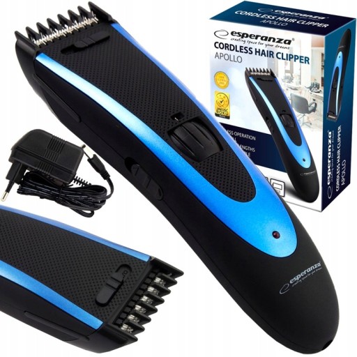- Zestaw zawiera: zasilacz, nasadkę grzebieniową, szczoteczkę, olej do konserwacji ostrzy.