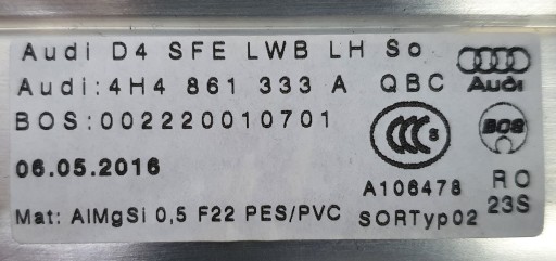 Roleta drzwi lewa Audi A8 D4 Long Lift 4H4861333A 4H0861963