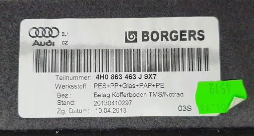 Podłoga bagażnika Audi A8 4H D4 4H0863463J 9X7