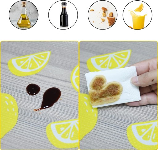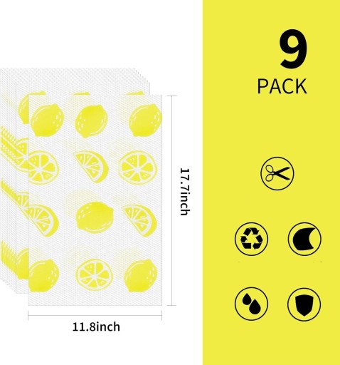 Każdy zestaw zawiera 9 mat o wymiarach 17.7 x 11.8 cala (45 cm x 30 cm), w dwóch różnych wzorach: stokrotki i cytryna. Możesz wybrać ulubiony wzór, aby udekorować swoją lodówkę, kuchnię lub inne miejsce.