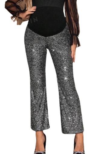 SHEIN SPODNIE CIĄŻOWE CEKINOWE SREBRNE