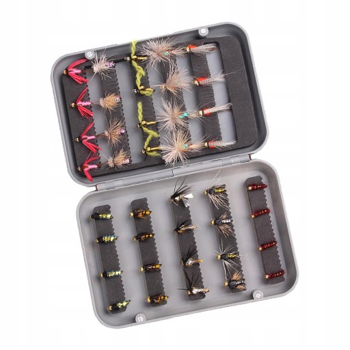 40 Sztuk Zestaw Much Wędkarskich Pstrąg Muchy łosoś Haczyk Różne Owady Przynęta W / Pudełko