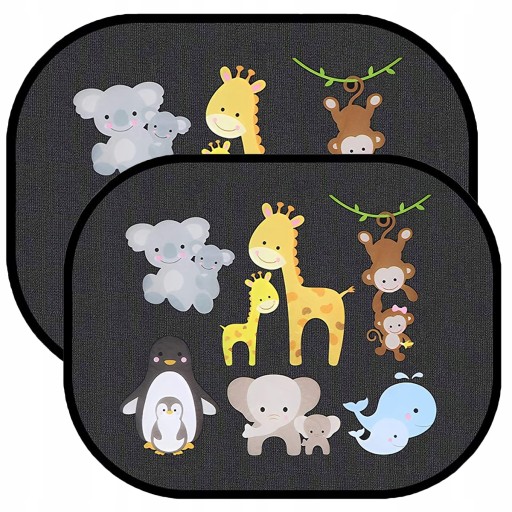 z certyfikowaną ochroną przed promieniowaniem UV (zestaw 2 szt.) – samoprzylepne osłony przeciwsłoneczne dla dzieci ze słodkimi motywami zwierzęcymi (dzika przyroda)