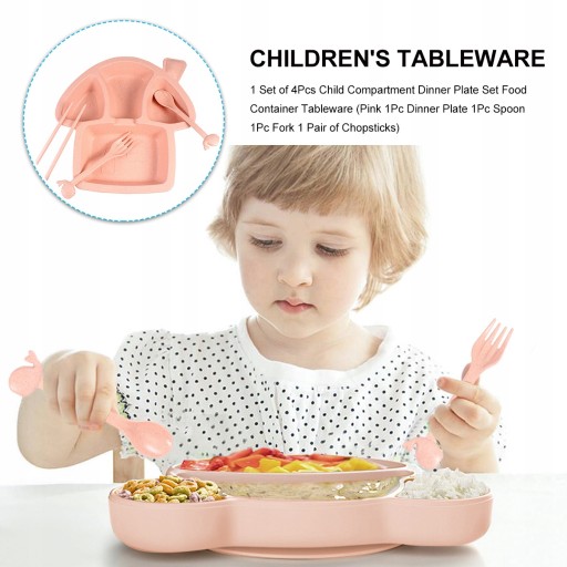 -Ten zestaw zastaw stołowych dla dzieci, w tym 1 talerz obiadowy, 1 łyżka, 1 widelec, 1 para pałeczek.