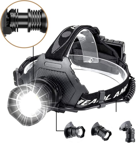 Zoomable Headlight: Zoom czołówkę można obracać do 90 stopni, regulować i rozszerzać obszar oświetlenia. Może być używany jako reflektor podczas pomniejszania i świecić podczas powiększania. Wygodny do kontrolowania kąta oświetlenia, uwolnienia rąk i spełnienia różnych potrzeb w zakresie oświetlenia zewnętrznego