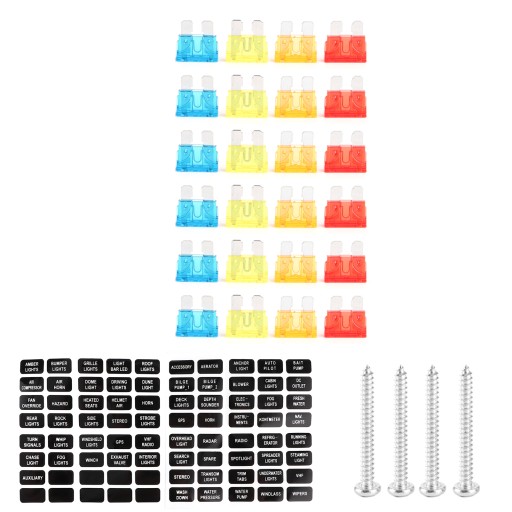 Lista pakietów:1 x skrzynka bezpieczników24 x bezpiecznik ostrza2 x naklejka4 x śruba