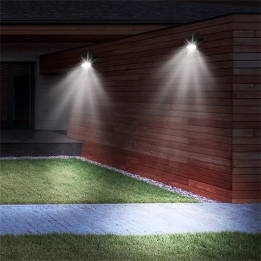 - Funkcja 2 w 1 - można ją przymocować do ściany jako lampę ścienną za pomocą śrub lub umieścić w ziemi jako oświetlenie ścieżki. Panel słoneczny i głowicę lampy można regulować pod kątem 120 stopni.