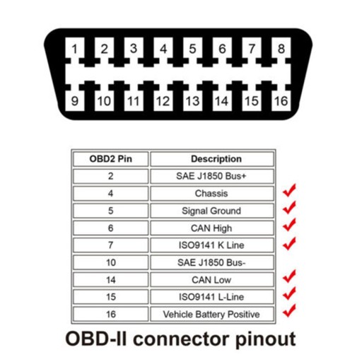 - Pin: 16-pinowy 8 rdzeń (międzynarodowy standardowy interfejs OBD2)