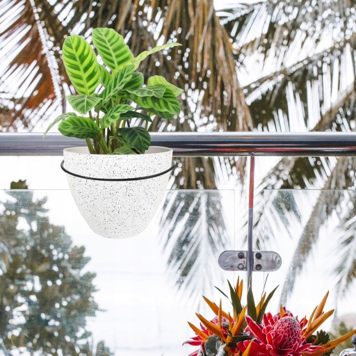 Nadaje się do dekoracji salonu, kuchni, balkonu, ogrodu itp. Łatwy do zawieszenia na ogrodzeniu balkonu, nasz stojak na doniczki to arcydzieło sztuki dla organizatora wystroju domu i ogrodu jako ozdobny uchwyt na stojak na kwiaty.