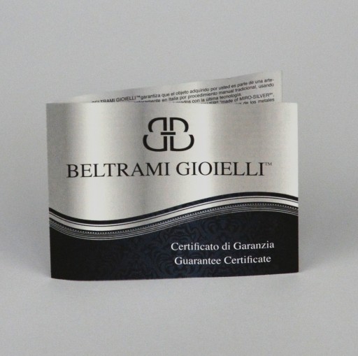 Znajdziesz też w nim oryginalną ulotkę producenta w języku włoskim i polskim wraz z certyfikatem autentyczności oraz informację o sposobie pielęgnacji. Do czyszczenia należy używać jedynie miękkiej ściereczki bądź letniej wody. Nie wolno stosować żadnych środków czyszczących, również tych przeznaczonych do czyszczenia srebra.
