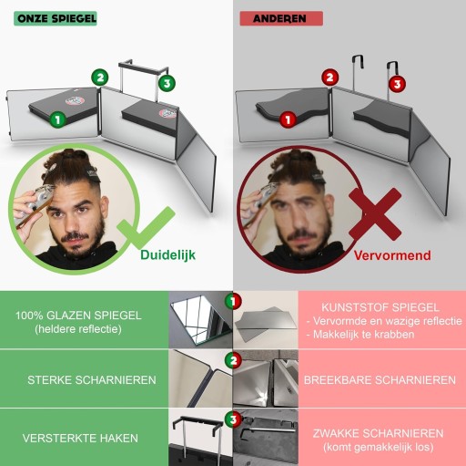 Zobacz siebie wyraźnie przez każde szkło dzięki naszym prawdziwym lustrzanym soczewkom, które zapewniają optymalne odbicie i dokładne odwzorowanie. Ciesz się doskonałą widocznością, co pozwala na precyzyjną pielęgnację i stylizację.