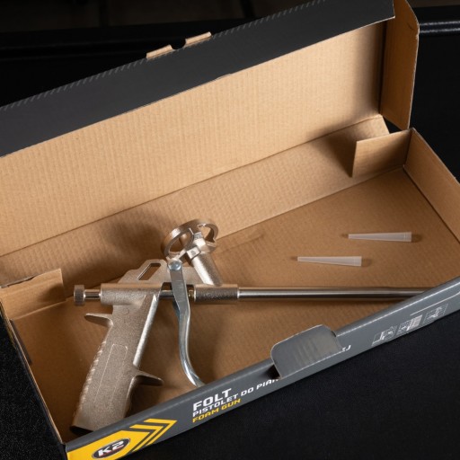 Pistolet K2 FOLT przeznaczony jest do aplikacji piany montażowej. Posiada standardowy gwint, dzięki czemu pasuje do wszystkich pian dostępnych na rynku. Specjalnie opracowana konstrukcja dyszy zapewnia równomierny wypływ piany. Ergonomiczna budowa i długi spust gwarantują wygodne i pewne użycie. Pistolet do pianki montażowej K2 FOLT posiada płynną i prostą regulacje ilości piany, a co za tym idzie daje użytkownikowi pełną kontrolę w dozowaniu piany. Wykonany z trwałych materiałów: korpus z aluminium, dysza/pokrętło ze stali powlekanej, iglica/spust stalowe, aplikator -lufa stal kwasoodporna.