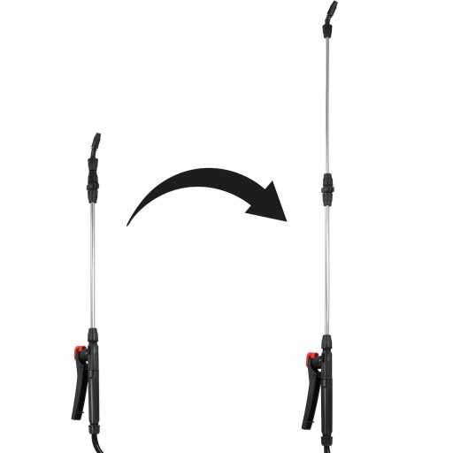Opryskiwacz Springos jest wyposażony w giętki wąż oraz długą teleskopową lancę, dzięki którym możesz w precyzyjny sposób kierować zraszanie w ściśle określone miejsce. Długość lancy, w zależności od stopnia jej rozsunięcia, wynosi od 37 cm do aż 63cm! Przy uchwycie pompki znajduje się wygodny uchwyt do przypięcia lancy, aby swobodnie założyć zbiornik na ramię lub przez ciało.