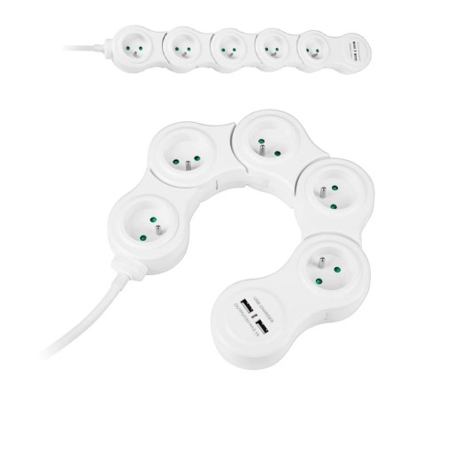 Удлинитель питания Rebel (змейка), 5 розеток, кабель 1,5 м.