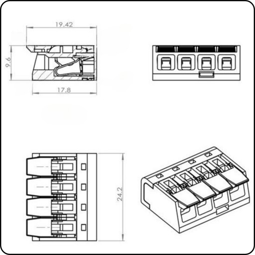 - W zestawie zapakowanym w poręczną skrzyneczkę znajdziesz szybkozłączki 2, 3 i 5-pinowe, kostki wtykowe, złącza typu Wago.