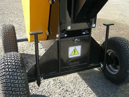 - Charakterystyka rębaka - Rębak tarczowy z wyrzutnikiem zrębki. Trzy noże tnące na rotorze.