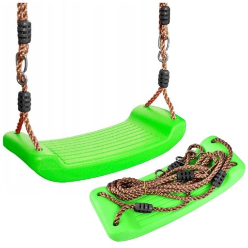 Siedzisko zostało wykonane z wytrzymałego tworzywa sztucznego, odpornego na zmienne warunki atmosferyczne, takie jak działanie promieni słonecznych, deszcz czy też niska temperatura. Siedzisko jest specjalnie wyprofilowane, dzięki czemu korzystanie z niego jest komfortowe i przyjemne. Dziecko siedzi stabilnie i może się bezpiecznie huśtać.