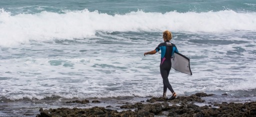 Bądź na fali! Bodyboard można łatwo zabrać ze sobą, by cieszyć się wodą. Jest do niego nawet dołączona praktyczna torba transportowa. Dzięki możliwości nadmuchiwania możesz zabrać ze sobą bodyboard na wakacje. Nadmuchaj go np. pompką rowerową (sprzedawana oddzielnie). Zamocuj leash na rzepy wokół kostki, tak aby deska nie odpłynęła za daleko. Daj się ponieść falom. To wspaniałe uczucie. A gdy po całym dniu frajdy chcesz schować bodyboard, możesz spuścić z niego powietrze. Dzięki temu deska nie zajmie dużo miejsca.