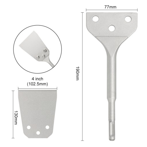 1. Compatibility: The heavy duty floor scraper is compatible with plus size electric hammers from brands such as Bosch, Hitachi and others.