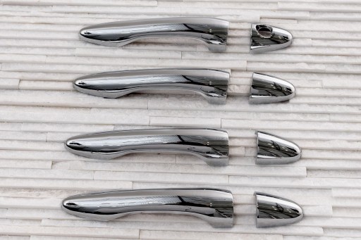 Zestaw zawiera komplet czterech nakładek na klamki. Montowane są za pomocą taśmy dwustronnie klejącej Scotch 3M, zaaplikowanej na wewnętrznej stronie elementów. Nakłada się je na powierzchnię odtłuszczoną przy pomocy benzyny ekstrakcyjnej lub spirytusu, w temperaturach dodatnich od 18 st.C. Zalecamy montaż profesjonalny.