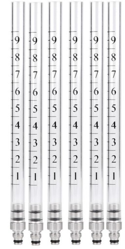 - 6 menzurek większych - uniwersalnych z wymiennymi końcówkami oraz wężykami o długości 650 mm
