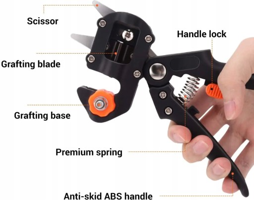 ☘️Wielofunkcyjność — przycinanie i szczepienie w jednym, najnowsze i najskuteczniejsze. Przeznaczony do szczepienia drzew, ale może być stosowany na pędach innych roślin drzewiastych.