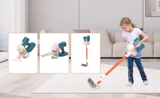 KONSTRUKCJA 3 W 1 - Nasz zestaw odkurzacza dla dzieci zawiera korpus, 3 wymienne dysze, 3 tryby czyszczenia, które mogą zaspokoić różne potrzeby dzieci w zakresie sprzątania, ćwiczyć ich zdolność do pracy i być dobrym pomocnikiem dla rodziców.