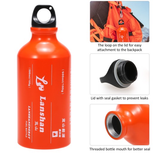 Butelka paliwa 500 ml ze stopu aluminium, super lekka i trwała.