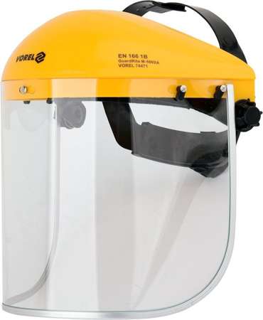 Przyłbica ochronna o szerokim kącie widzenia, ze wzmocnioną krawędzią szybki, z precyzyjną regulacją rozmiaru oraz kąta pochylenia. Skutecznie ochroni operatora przed odpryskami urobku z prac ręcznych i mechanicznych takich jak szlifowanie, cięcie drewna, cięcie metalu, koszenie trawy itp.