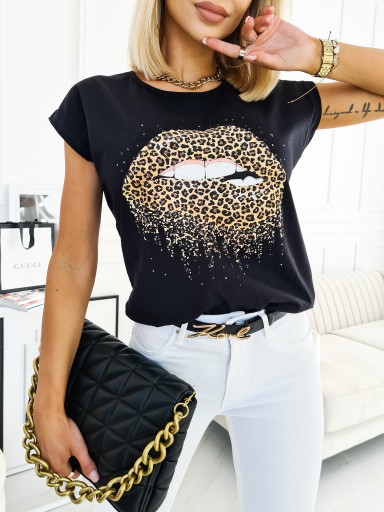 Z przodu stylowy nadruk print - USTA z motywem panterki.