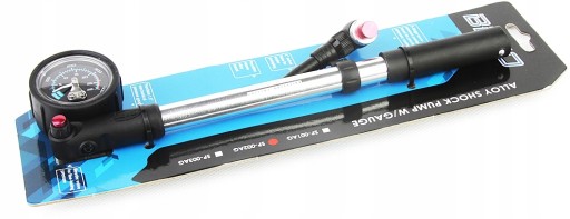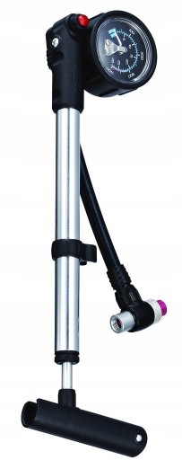 - Pompka do amortyzatorów jest wyposażona w manometr i zawór dozujący oraz wężyk z głowicą AV