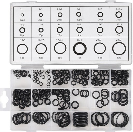 Posegregowane uszczelki w wygodnej kasetce sprawdzają się podczas prac kiedy potrzebny jest odpowiedni rozmiar w nagłych przypadkach w trybie pilnym.